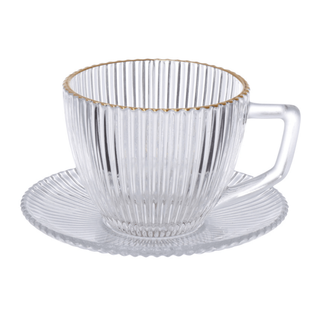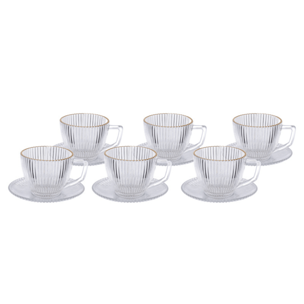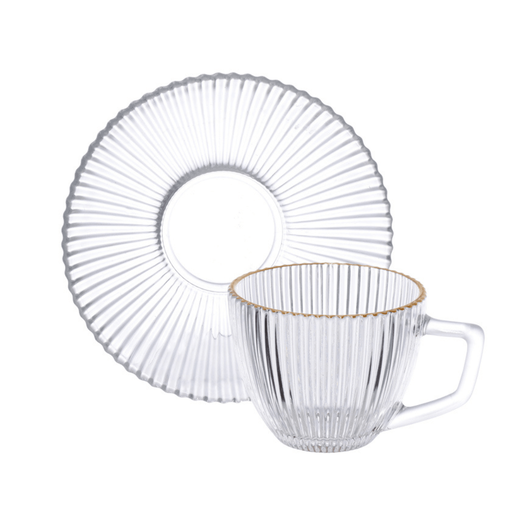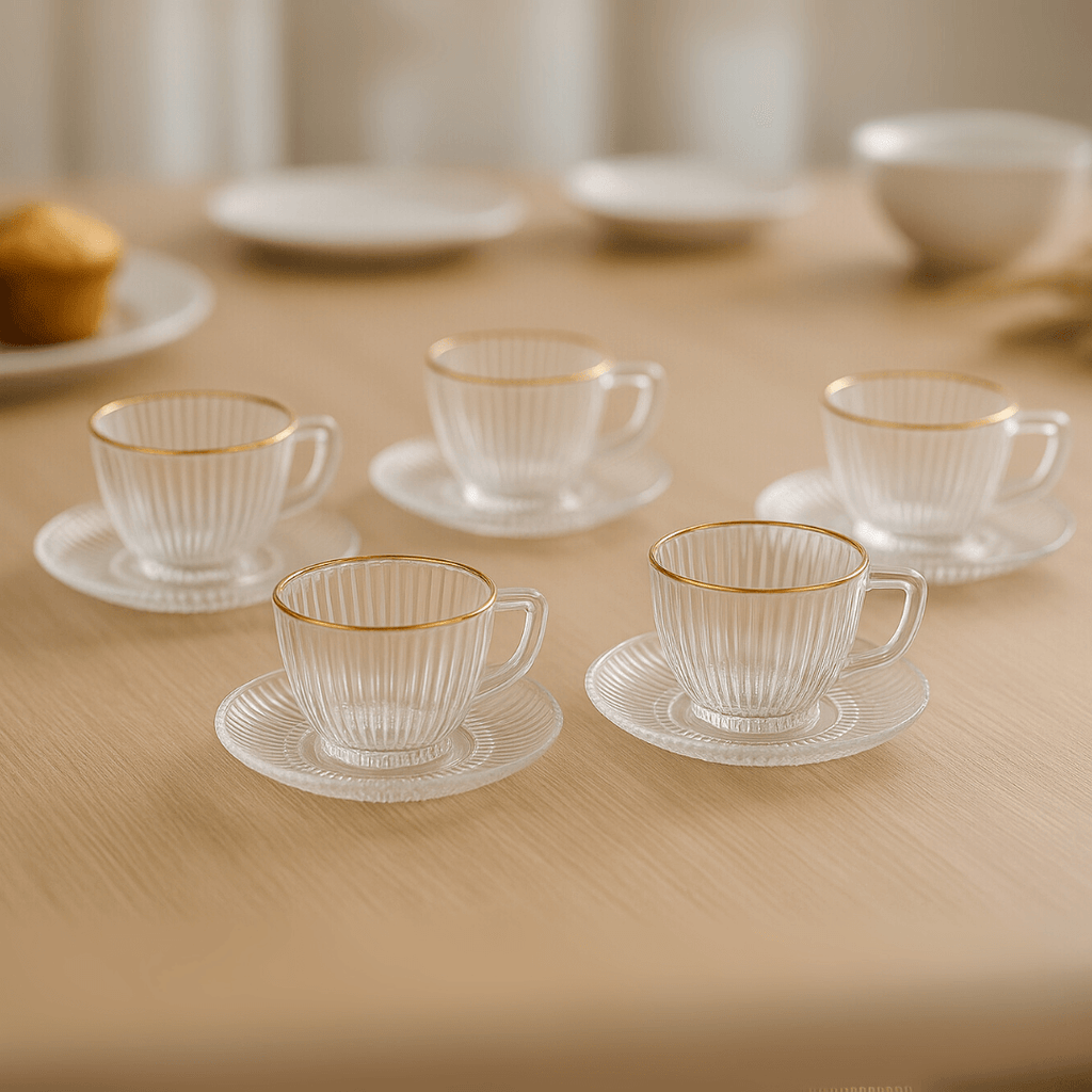 Cada xícara é produzida em vidro de alta qualidade, garantindo resistência e brilho. A borda dourada, aplicada com acabamento delicado, transmite requinte e exclusividade, ideal para receber convidados ou saborear suas bebidas favoritas com mais estilo.
