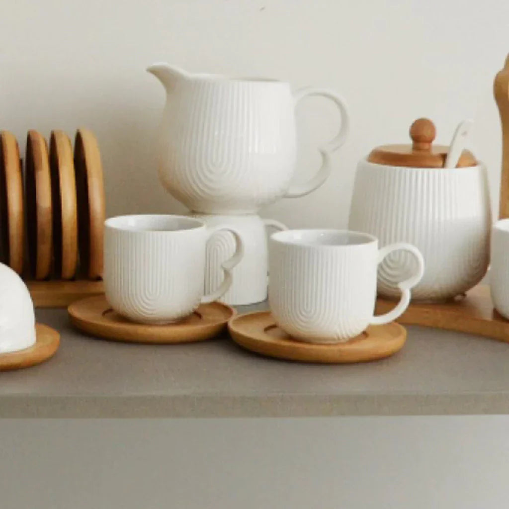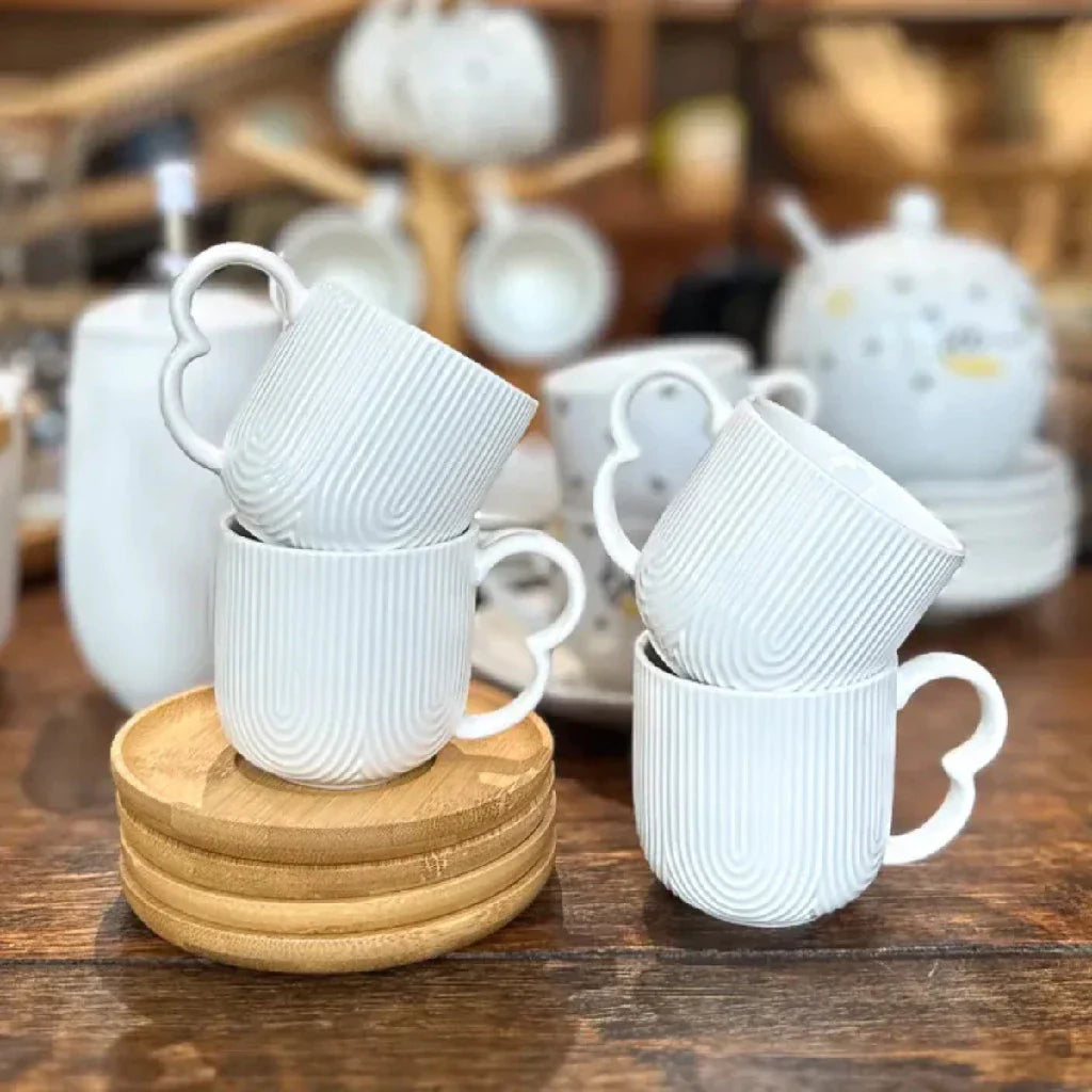 Cada xícara foi desenhada para caber confortavelmente nas mãos, enquanto os pires de bambu proporcionam um toque rústico e elegante à sua mesa. Ideal para cafés filtrados, espressos ou aquele cafezinho passado na hora, esse conjunto transforma o comum em extraordinário.