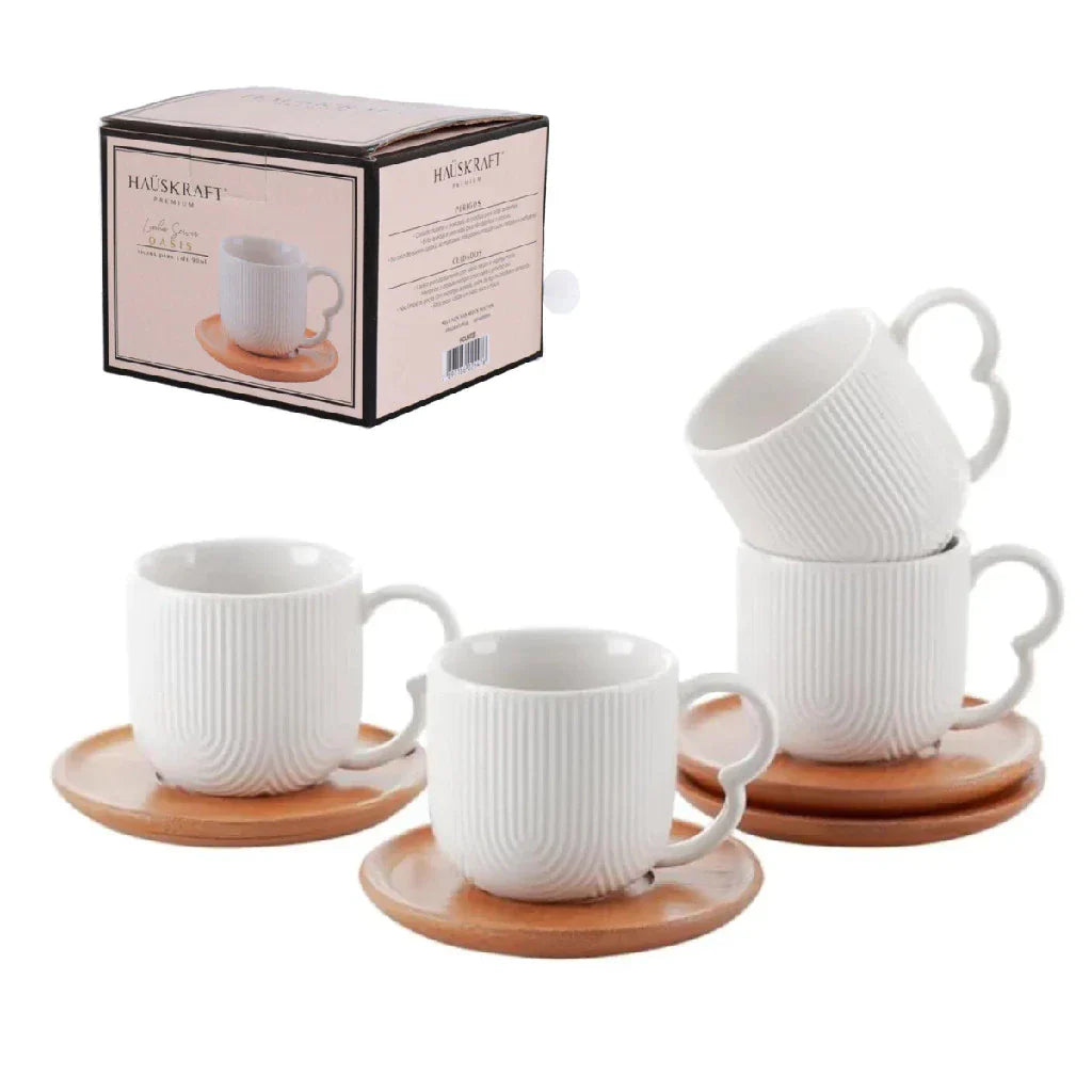Jogo de 4 Xícaras de Café com Pires de Bambu